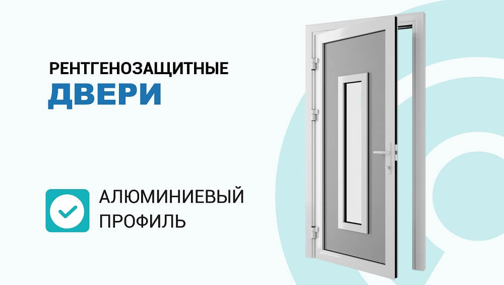 Алюминиевые рентгенозащитные двери состоят из дверной коробки, полотна и наличников (опционально). Материал дверной коробки и полотна — специальные алюминиевые профили, в которых свинец имеет ограниченный контакт с кислородом. Данный профиль образует особую прочность и легкость.